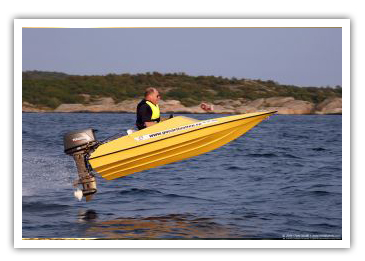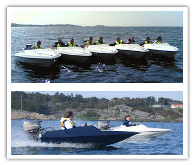 Därefter tar vi på oss flytväst och tar plats i båten. Sedan glider vi ut från Marstrand i lugnt tempo för att sedan öka tempot efter hand. Vissa partier glider vi på ett långt led och vid några ställen drar på i upp till 37 knop eller så fort ni bara vågar. Beroende på väder och vind väljer vi passande områden där man riktigt kan känna på farten. Man sitter två i varje båt och byter plats när man vill. Vi följer med som ledbåt och visar er skärgården runt Marstrand.