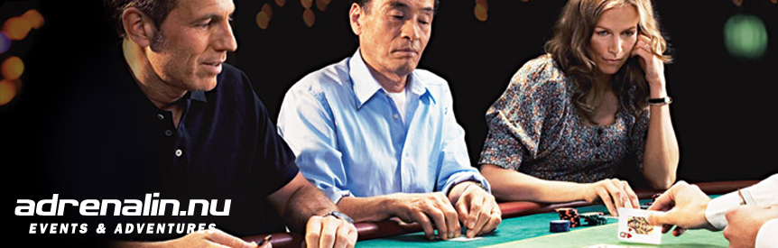 Efter en kort introduktion av spelet Texas Hold'em provar ni kunskaperna i en turnering mot varandra. Egen dealer, eget bord. Pokerutmaningen innehåller entré, pokerskola och lättare turnering i 90 minuter med eller utan insats (valfritt). Vi avslutar med en trerätters middag.